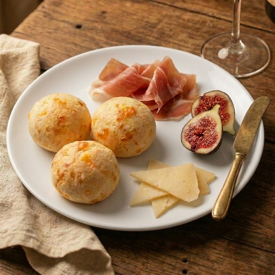 Pan de queso brasileño listo para hornear. Disfruta de una experiencia única, crujiente por fuera y suave por dentro.
